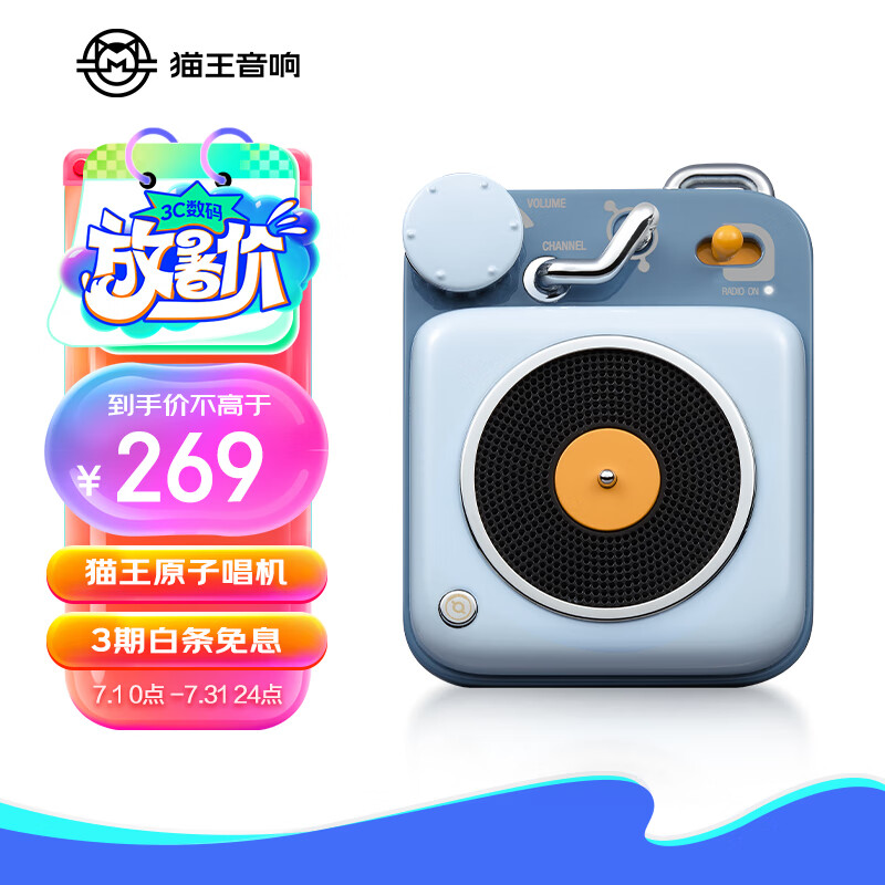 猫王收音机猫王音响 原子唱机B612 MW-P1便携式复古蓝牙音箱户外迷你小音响七夕情人节礼物 童心蓝价格:269.00元!