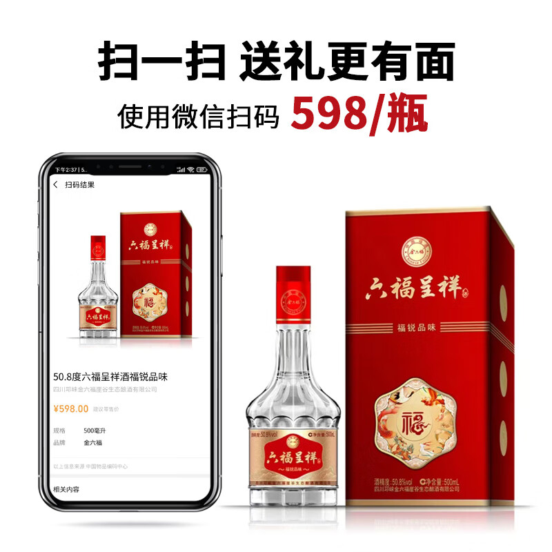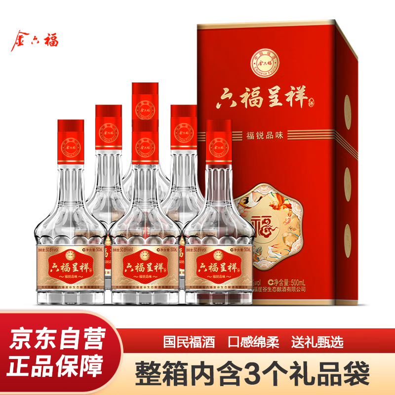 金六福 六福呈祥 福瑞品味 50.8度 500ml*6瓶整箱礼盒装 宴请送礼价格:238.00元!