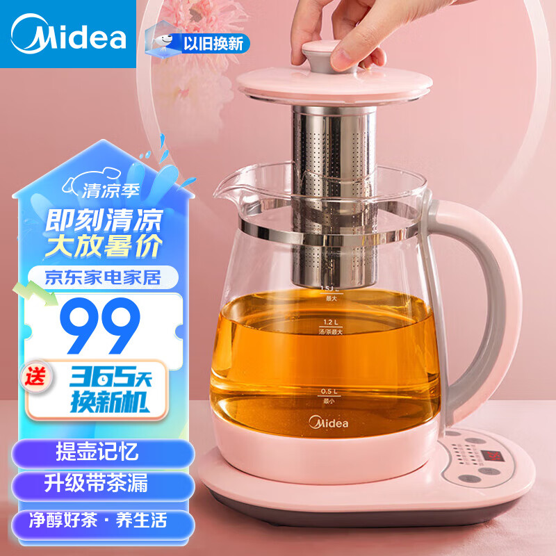 美的(Midea) 养生壶 1.5L大容量煮茶器花茶壶电水壶恒温水壶烧水壶家用恒温壶电热水壶煮茶壶12大功能智能预约 带茶漏款 MK-YS15M211 1.5L价格:199.00元!
