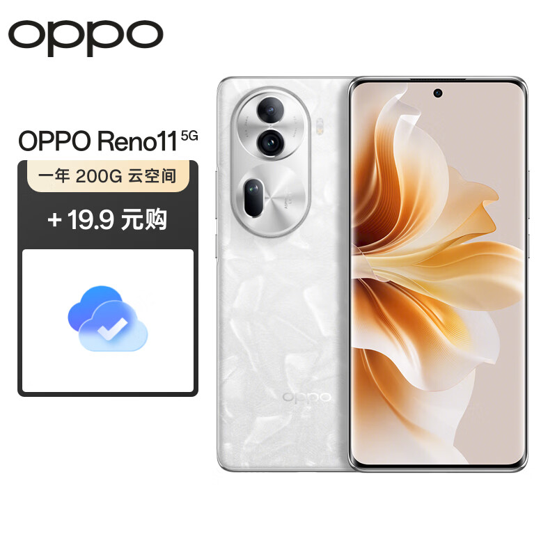 OPPO Reno11 单反级人像 天玑8200 长续航 8GB+256GB 月光宝石 5G拍照 AI手机【一年200G云服务套装】价格:2118.90元!