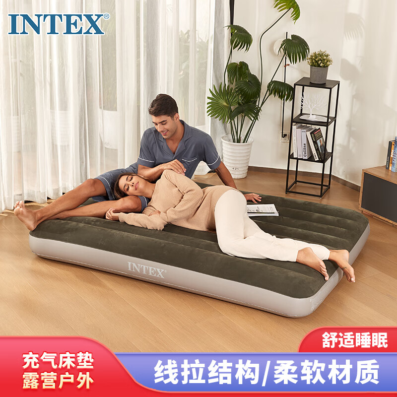 INTEX 64108W充气玩具床露营户外防潮垫 家用陪护午睡躺椅双人折叠床价格:136.00元!