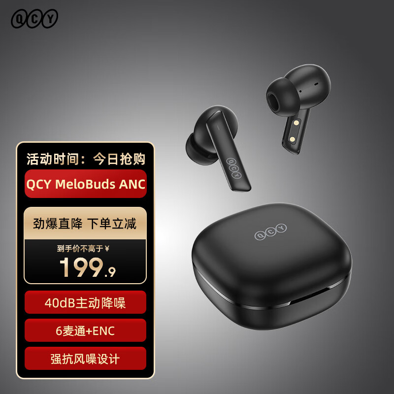 QCY MeloBuds ANC真无线蓝牙耳机主动降噪入耳游戏低延迟通话降噪运动降噪小方糖适用全部手机 黑色价格:199.90元!