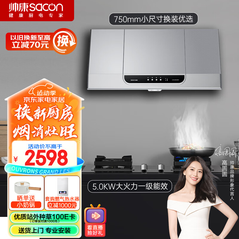 帅康(Sacon)抽油烟机烟灶套装家用大风量中式抽油烟机燃气灶油烟机灶具小尺寸换装优选MD01+61C天然气价格:2598.00元!