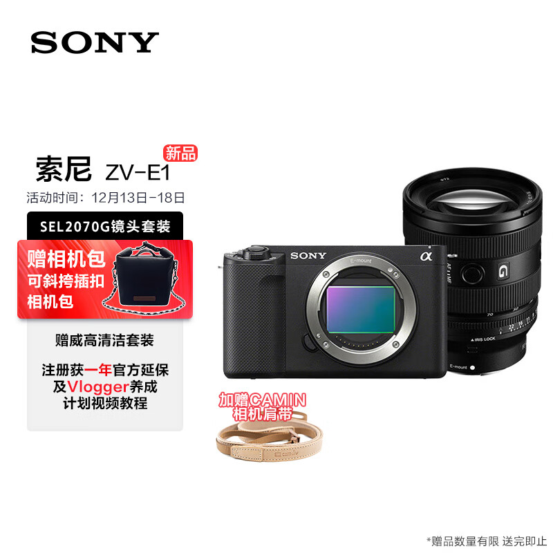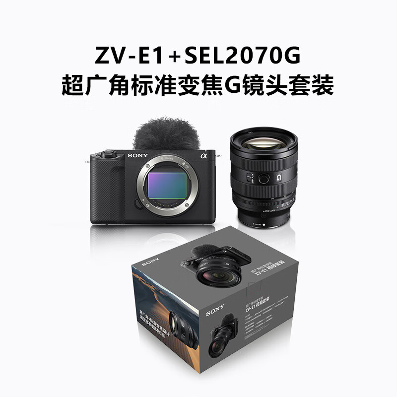 索尼(SONY)ZV-E1 全画幅Vlog旗舰 微单相机 黑色+SEL2070G广角镜头套装 可升级至4K 120p和FHD 240p价格:21798.00元!