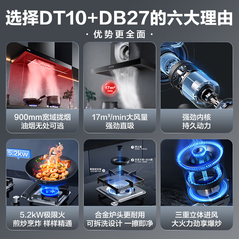 苏泊尔(SUPOR)排油烟机 宽域拢烟大吸力油烟机 家用易清洁欧式顶吸抽油烟机 吸油烟机燃气灶套装DT10+DB27液化气价格:1246.00元!