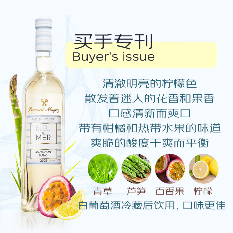 贝玛格雷(Bernard Magrez)【海外直采】法国奥克碧海蓝天干白葡萄酒750ml单瓶价格:109.00元!