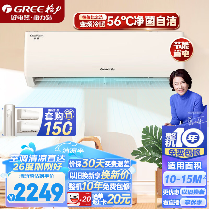 格力(GREE)空调挂机 大1匹 云佳 三级能效变频冷暖 56℃净菌自洁 壁挂式空调挂机(KFR-26GW/NhGc3B 珊瑚玉色)价格:2249.00元!