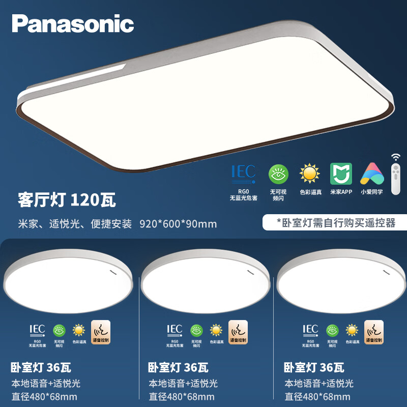 松下(Panasonic)吸顶灯 快装客厅灯套餐米家智能控制护眼吸顶灯三室一厅B价格:2799.00元!