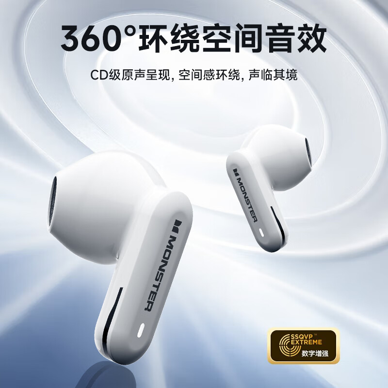 魔声(MONSTER)【蓝牙5.4】无线蓝牙耳机半入耳式游戏电竞降噪跑步运动音乐耳机Type-C 适用华为小米 XKT25白色价格:139.00元!