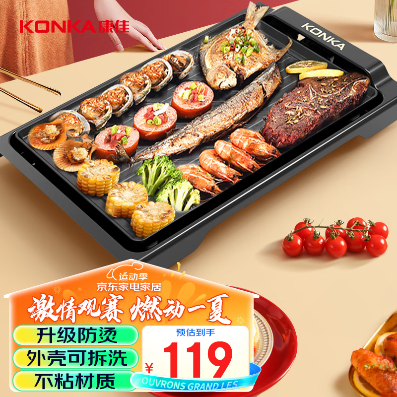 康佳(KONKA)家用无烟电烧烤炉 不粘电烤炉电烤盘烤肉炉烤肉锅韩式电烤炉铁板烧烤盘烤肉机 KEG-W180A价格:119.00元!