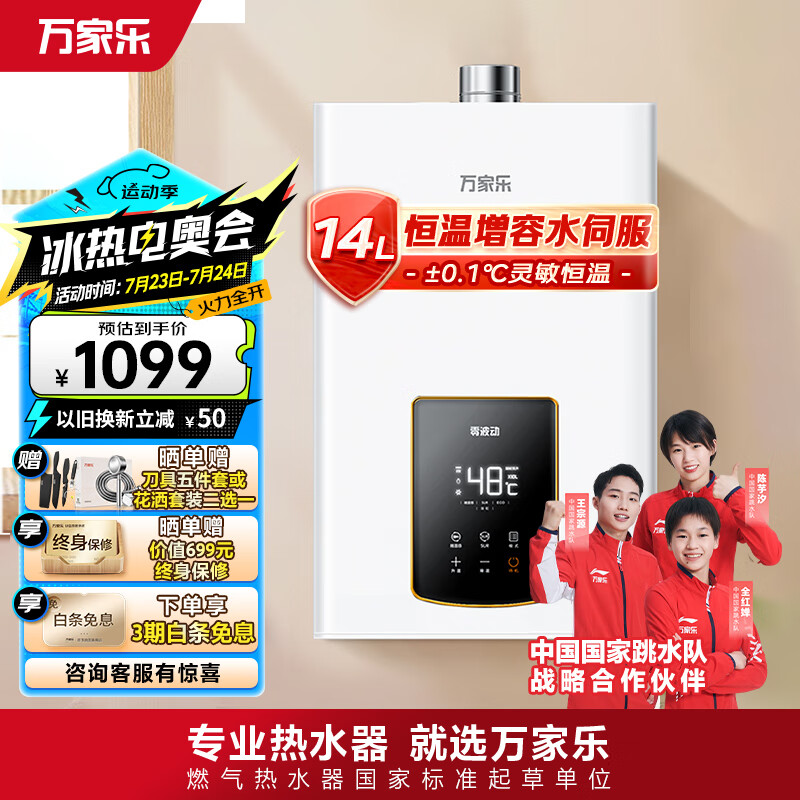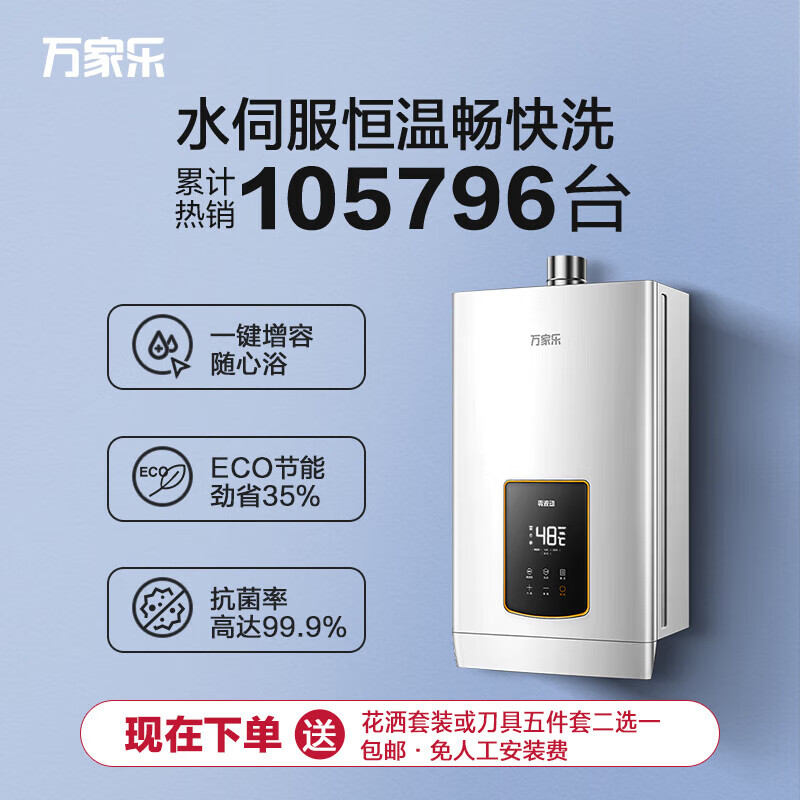 万家乐 13升燃气热水器电家用恒温即热式天然气 水量伺服器智能变升节能随温感JSQ26-13D6S(F)价格:1099.00元!