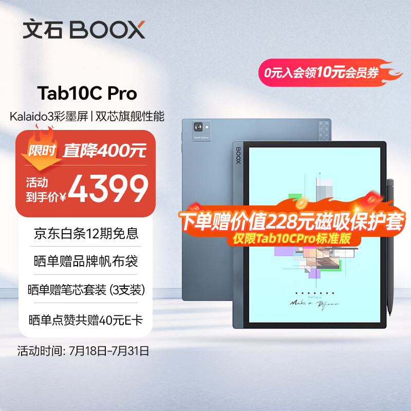 BOOX文石 Tab10C Pro10.3英寸彩色墨水屏电子书阅读器 智能办公本 大屏电纸书电子纸高刷 语音转文字价格:4399.00元!