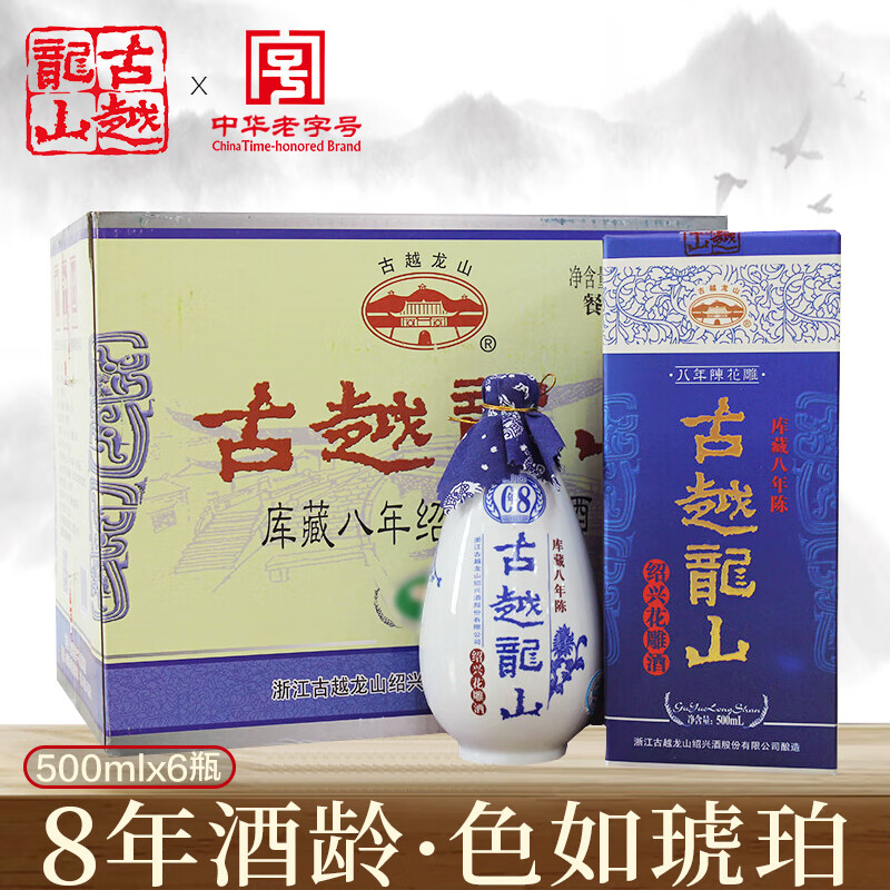古越龙山 库藏八年 传统型半干 绍兴 黄酒 500ml*6瓶 整箱装 花雕价格:390.00元!