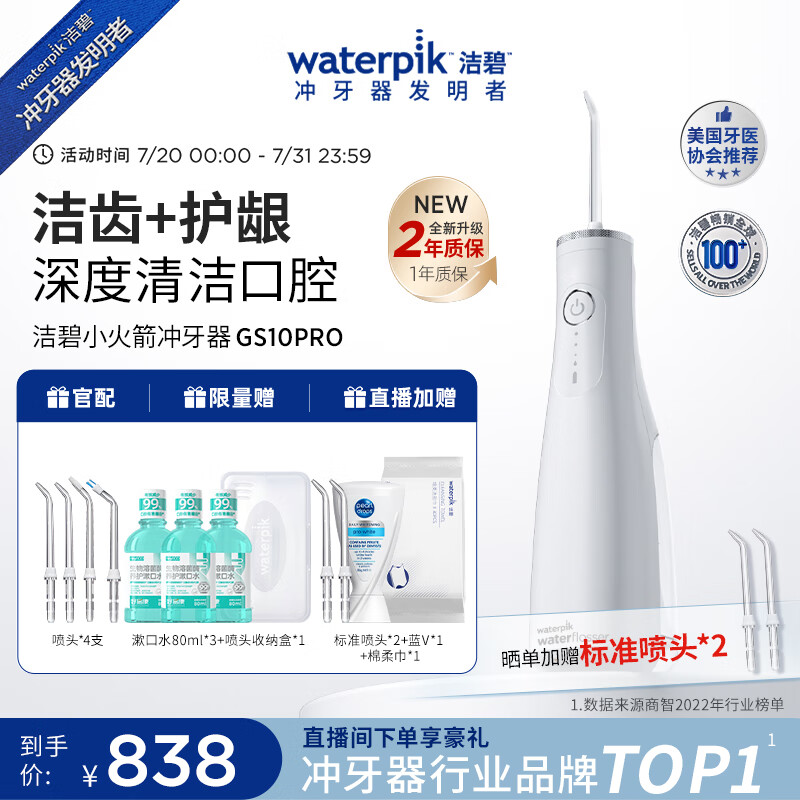 洁碧(Waterpik)冲牙器便携式电动洗牙器水牙线洁牙器家用立式预防牙结石全身水洗【小火箭】洁净白价格:958.00元!