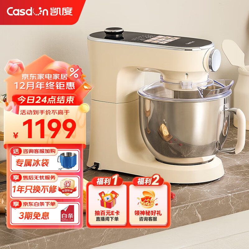 凯度(CASDON)全自动厨师机 6.8L大容量 多功能和面机 打蛋器 绞肉机 1300W直流低音电机 家用厨师机CSJ-F6价格:1199.00元!
