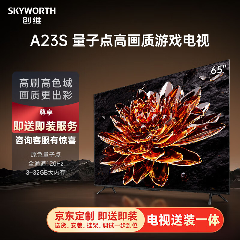 创维电视65A23S【送装一体版本】65英寸电视机量子点120Hz高刷3+32G蓝牙5.0双频WIFI屏游戏电视价格:2338.00元!