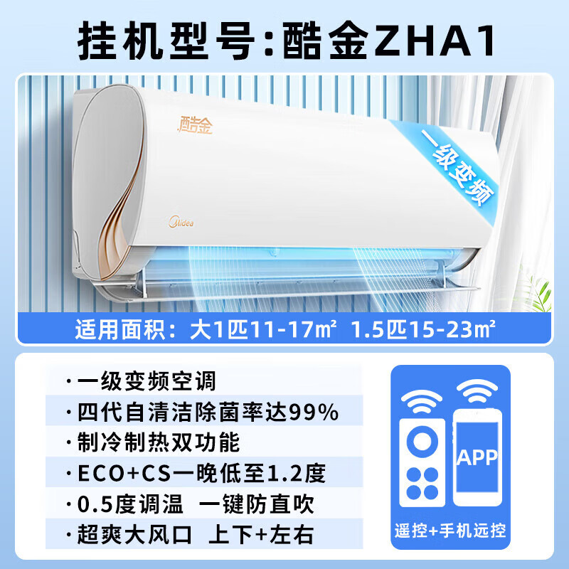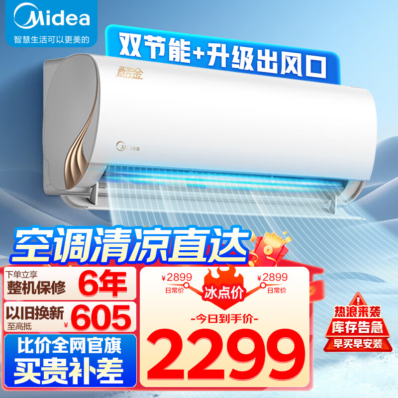 美的(Midea)空调酷金 新一级能效 1.5匹 变频冷暖 大风口自清洁 家用卧室壁挂式挂机 KFR-35GW/N8ZHA1Ⅱ价格:2299.00元!