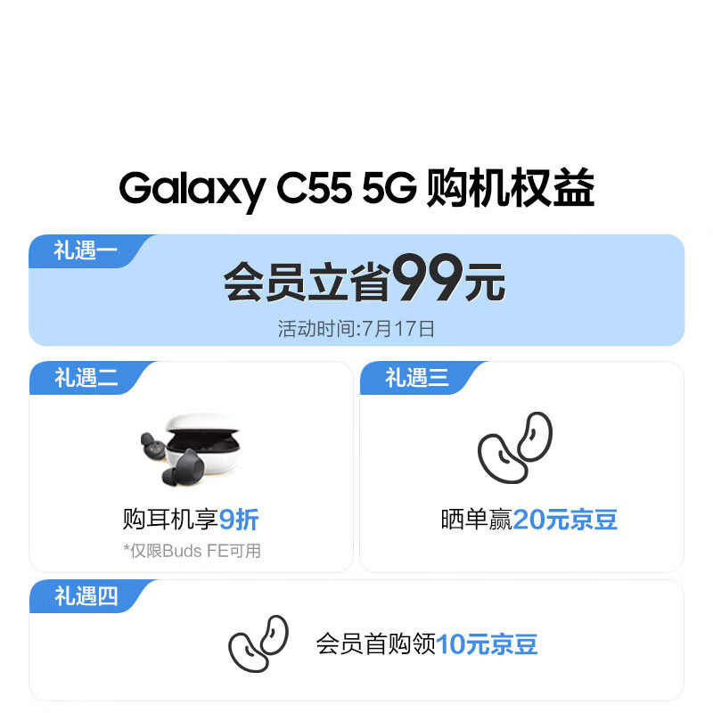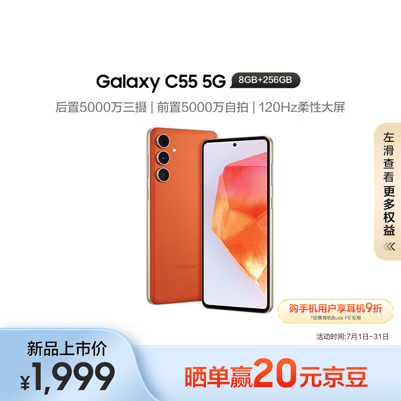 三星(SAMSUNG)Galaxy C55 5G手机 前后5000万像素 拍照手机 Super AMOLED+柔性大屏 8GB+256GB 缤纷橙价格:1999.00元!