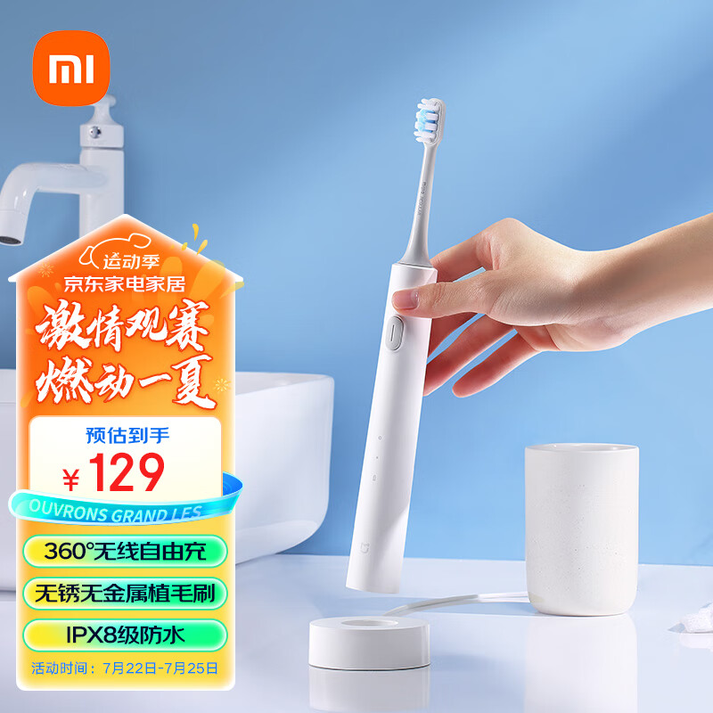 米家 小米电动牙刷 声波震动 两档模式 无线充电 闪充应急 50天续航 T301 七夕情人节礼物推荐价格:109.00元!