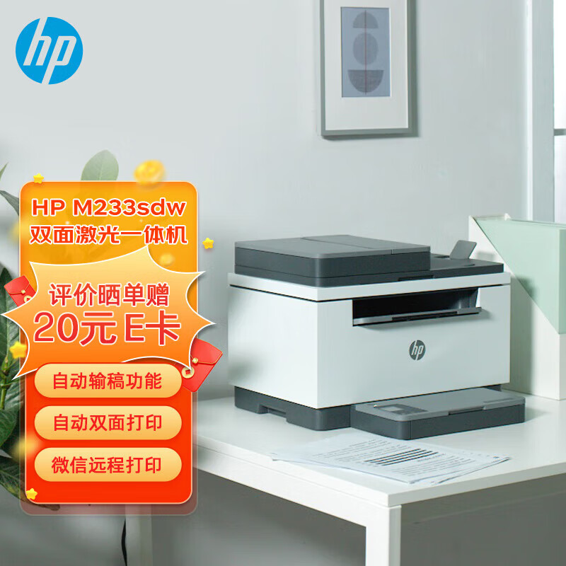 惠普 (HP) M233sdw 双面三合一无线打印机 打印复印扫描办公 激光多功能 小型商用(跃系列)价格:1499.00元!