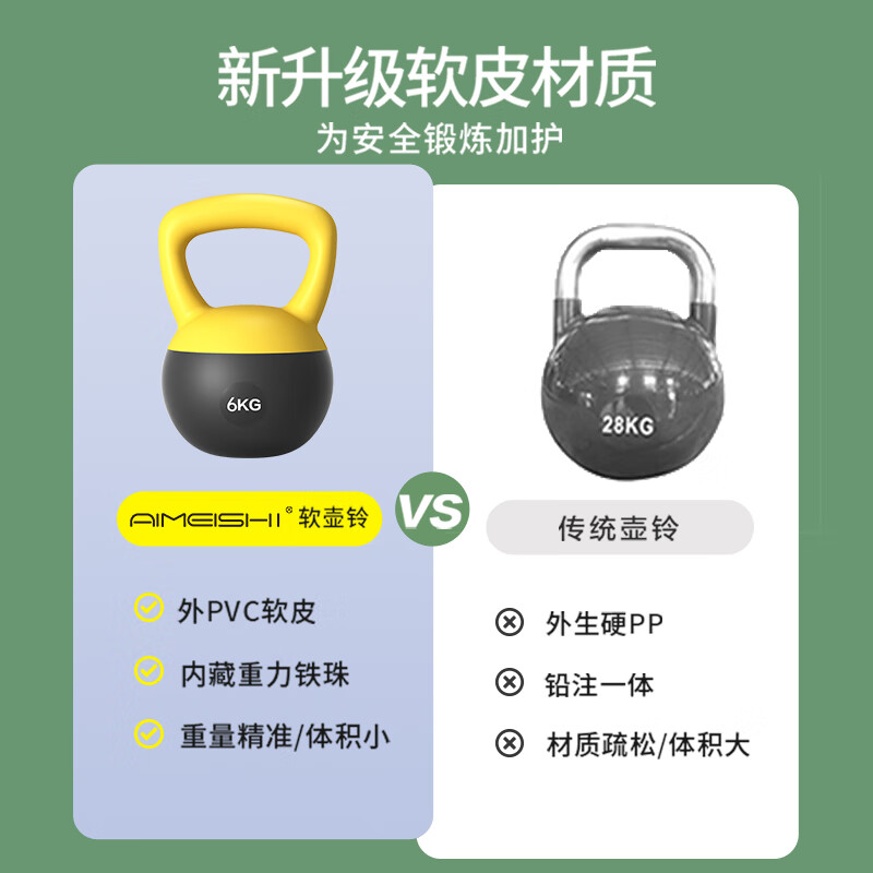 艾美仕(AiMeiShi)软壶铃健身家用男士哑铃提壶翘臀神器深蹲健身器材 8KG价格:105.00元!