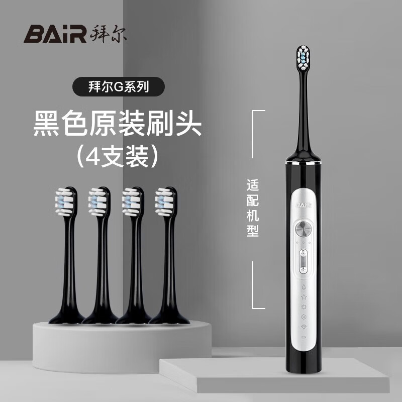 拜尔(BAIR)原装电动牙刷头G1 G2 G201 G204 G205 小白001型号(错购刷头拆开无尘包装货值自行承担) G2配套黑色原装刷头4支装价格:119.00元!