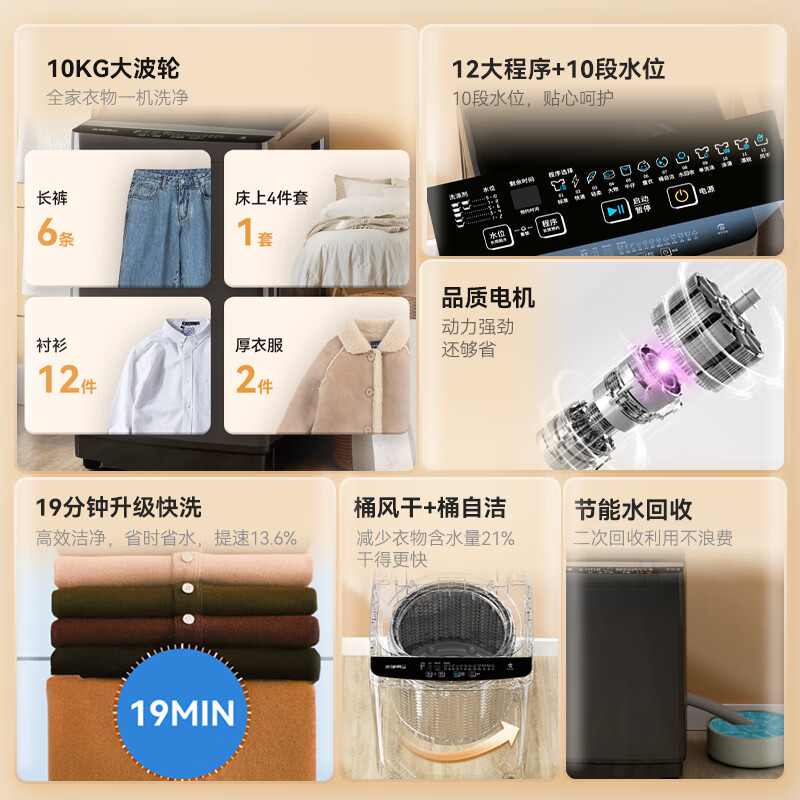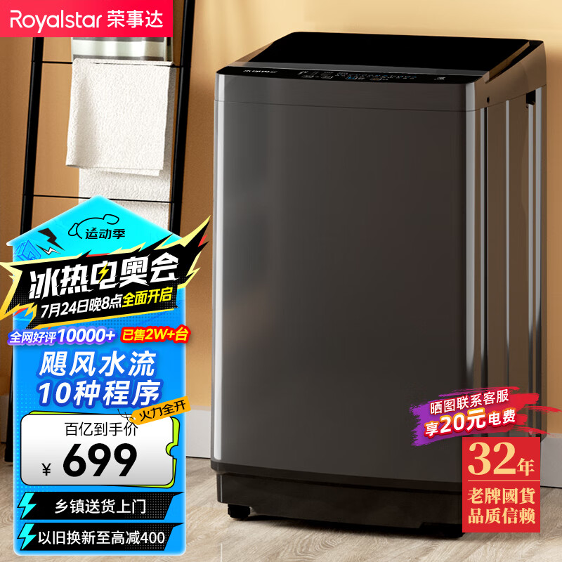 荣事达(Royalstar) 洗衣机 10公斤全自动波轮大容量家用脱水机甩干机洗衣机 以旧换新 深灰色 ERVP191020T价格:759.00元!