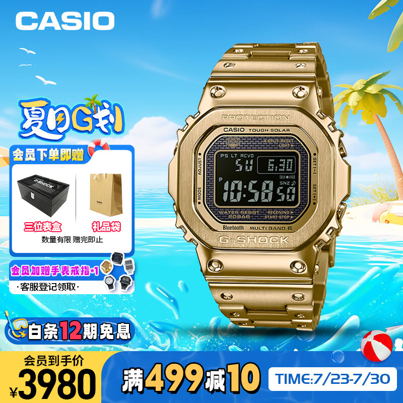 卡西欧(CASIO)手表男G-SHOCK经典金属小方块运动日韩表七夕送男友GMW-B5000GD-9价格:3990.00元!