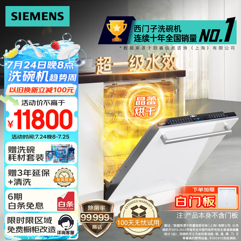 西门子全能舱全嵌入式16套晶蕾烘干除菌存储 晶蕾96小时储存 触控式SJ65ZX00MC(带白玻璃门板)价格:10500.00元!