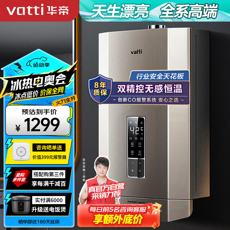 华帝(VATTI)16升燃气热水器天然气 水气双调 家用即热式 四季免调温 燃气防泄漏保护 以旧换新 i12053-16价格:1399.00元!