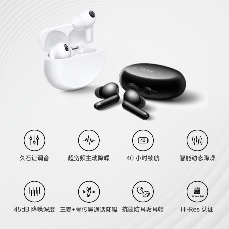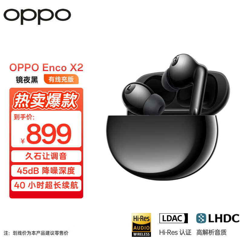 OPPO Enco X2真无线入耳式主动降噪游戏蓝牙耳机 久石让调音 通用苹果华为小米手机 有线充版镜夜黑价格:899.00元!