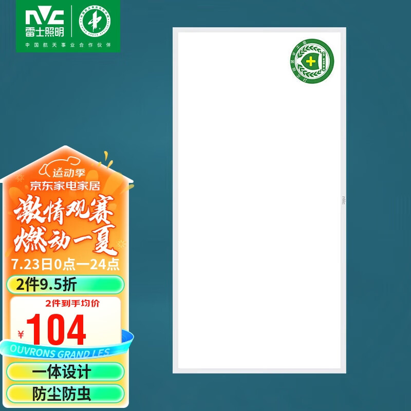 雷士照明LED集成吊顶面板厨卫灯嵌入式光触媒珍珠白窄边框24W 300*600价格:109.00元!
