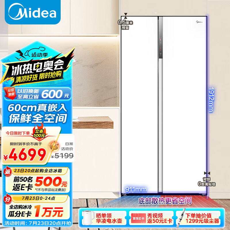 美的(Midea)M60系列60cm薄549对开门双开门超薄纯平全嵌式家用智能电冰箱变频一级能效MR-549WUKPZE底部散热价格:5199.00元!