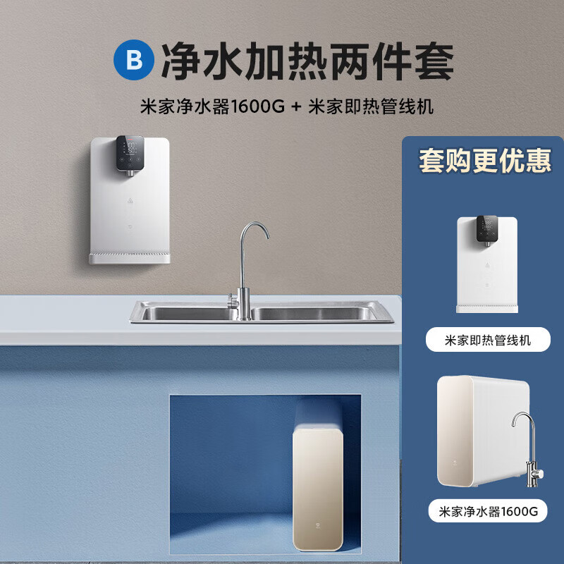 米家【净水+管线机】净水器1600G+管线机 小米净水器套装B价格:3898.00元!