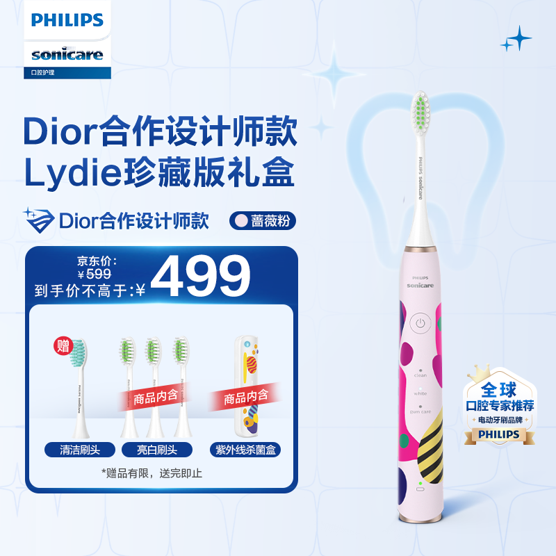 飞利浦(PHILIPS)电动牙刷 成人情侣款七夕礼物送男/女友礼物 S5系列带3支刷头+杀菌牙刷盒设计师款蔷薇粉价格:529.00元!