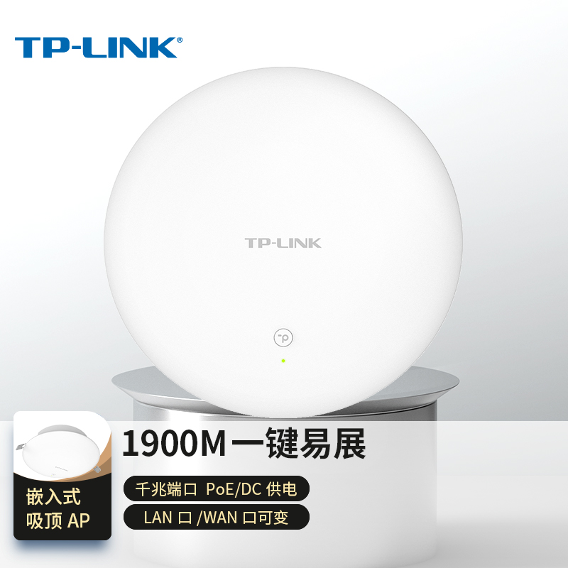 TP-link 1900M双频千兆无线嵌入式吸顶AP 企业级酒店别墅大户型wifi接入 TL-AP1900GE-PoE/DC易展版价格:359.00元!