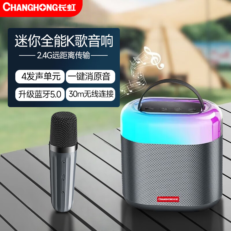 长虹K6麦克风音响一体家用KTV全套设备无线蓝牙儿童唱歌神器k歌娱乐卡拉OK专业音箱电脑户外手机电视 灰 单麦价格:110.10元!