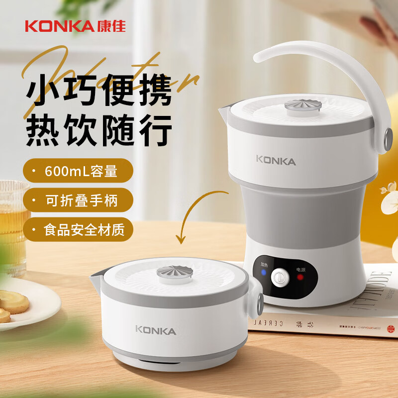 康佳(KONKA)电热水壶 折叠水壶烧水壶迷你便携旅行食品级硅胶开水壶 0.6L KDSH-0601-W价格:69.90元!