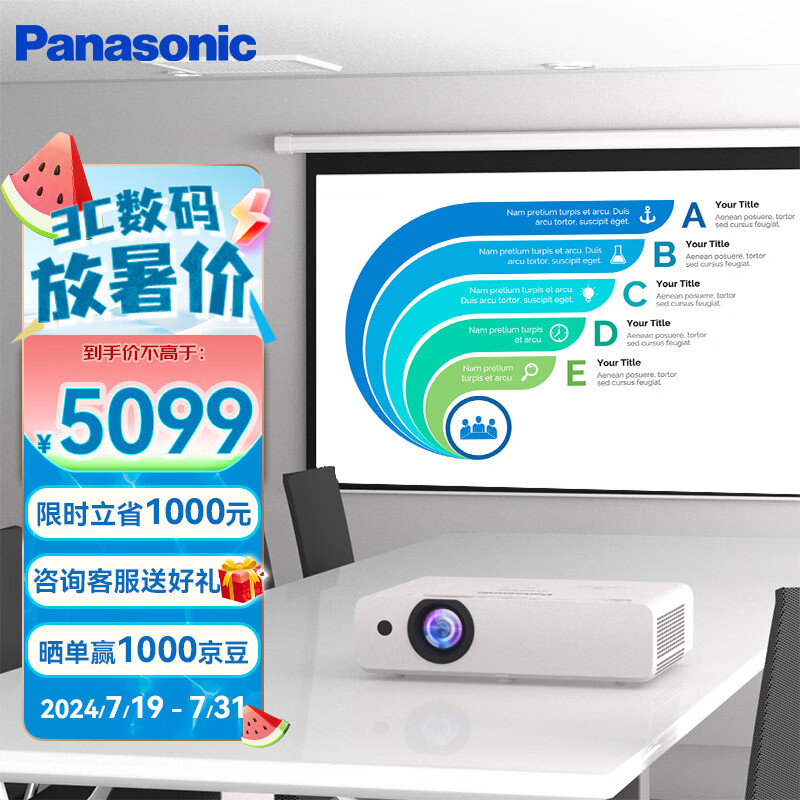 松下(Panasonic)PT-WX4201 投影仪办公室会议专用 白天商用投影机家庭影院(4300流明 高亮大屏 白天直投)价格:6099.00元!
