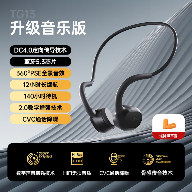 山水(SANSUI)TG13 蓝牙耳机骨传导耳机 运动骑行无线跑步不入耳头戴挂耳式防汗长续航 适用苹果华为安卓手机价格:139.00元!