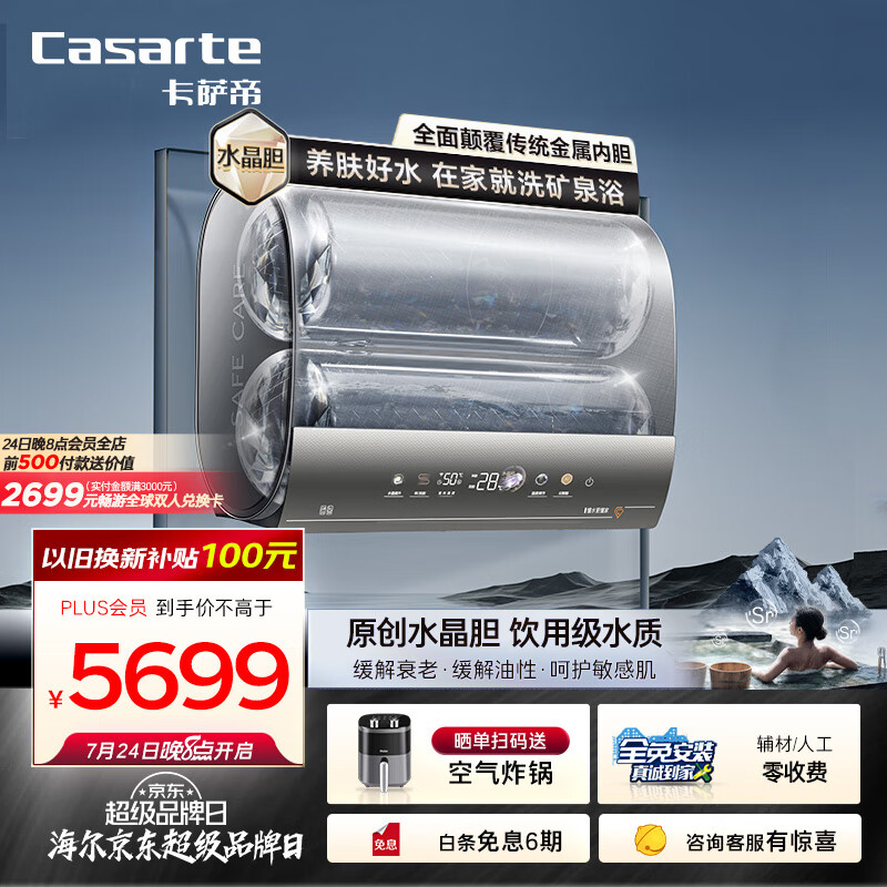 卡萨帝(Casarte)60升【水晶胆PROM3】家用储水式超薄扁桶电热水器富锶汤浴变频速热CES60HD-PROM3CEK03U1以旧换新价格:5999.00元!