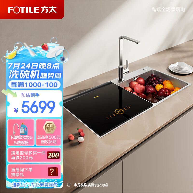 方太(FOTILE)水槽洗碗机家用 高能气泡洗 洗碗不弯腰 WiFi智控 超薄门板水槽一体嵌入式JPSD2T-02-C4JL.i价格:6299.00元!