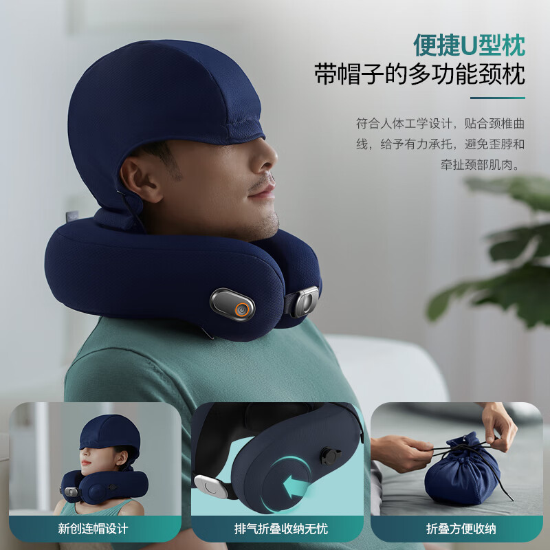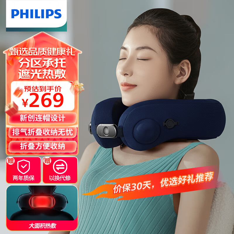 飞利浦(PHILIPS)充气式U型枕午睡枕头睡眠颈椎枕专用 遮光热敷护颈枕 肩颈颈部脖子承托枕头情人节七夕送礼 3101N价格:269.00元!
