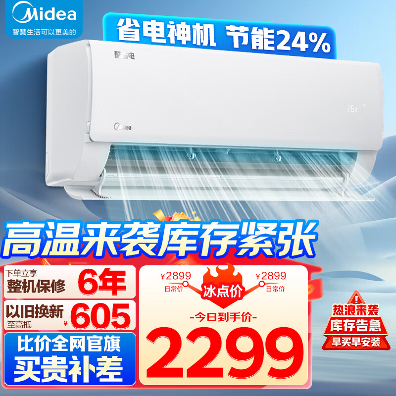 美的(Midea)空调 1.5匹 酷省电 新一级能效变频冷暖自清洁家用壁挂式空调挂机智能家电 KFR-35GW/N8KS1-1价格:2299.00元!