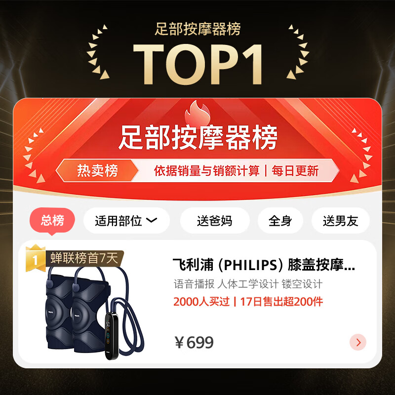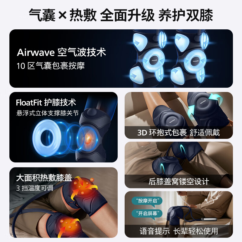 飞利浦(PHILIPS)膝盖按摩仪 膝盖热敷护理按摩器双膝揉捏护膝仪腿酸阴天腿冷暖膝 生日礼物礼品送父母长辈 5201L价格:799.00元!