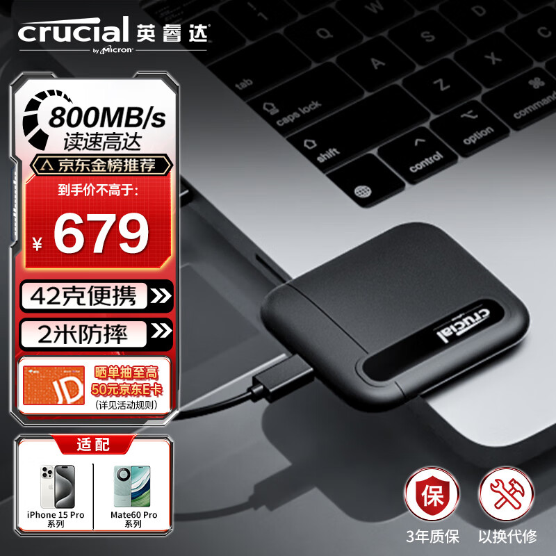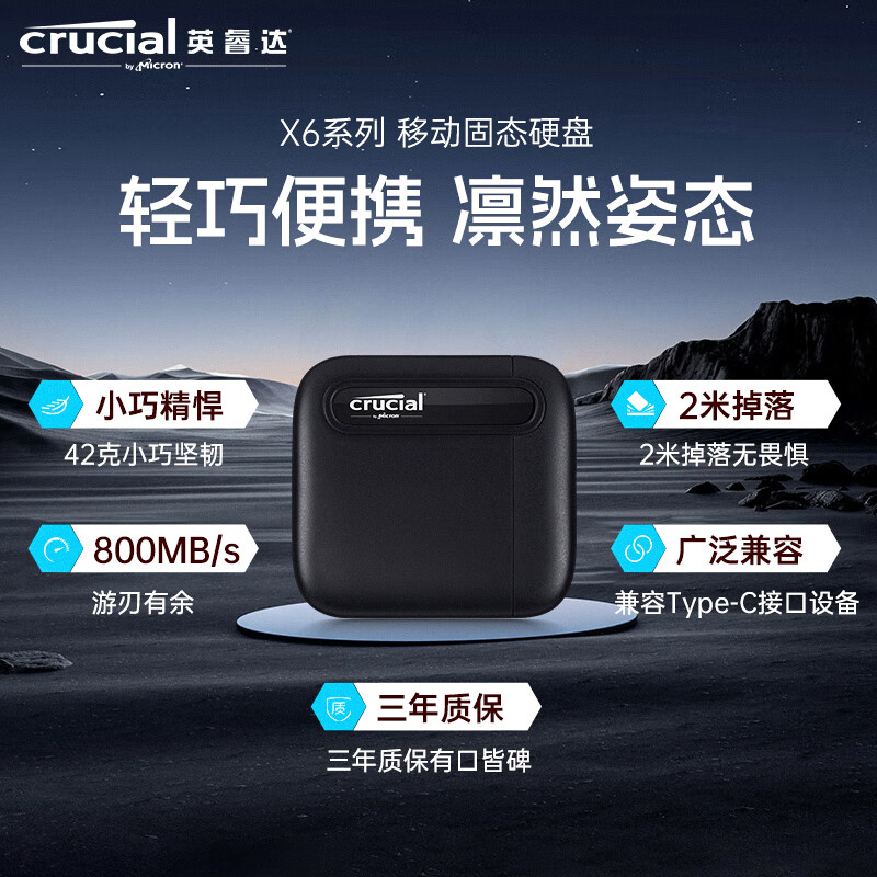 英睿达(Crucial)美光 2TB Type-c USB3.2 移动固态硬盘(PSSD)X6系列 SSD 800MB/s高速 笔记本手机外接SSD价格:679.00元!