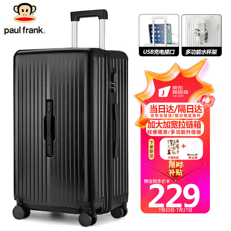 大嘴猴行李箱女大容量拉杆箱男26吋轻音万向轮加厚旅行大容量拉链密码箱价格:229.00元!