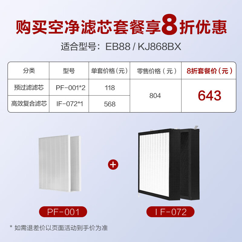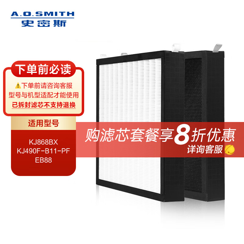 史密斯(A.O.SMITH)空气净化器HEPA活性炭高效除甲醛滤网滤芯IF-072升级款(适用KJ868BX/KJ490F-B11-PF/EB88)【配件】价格:568.00元!