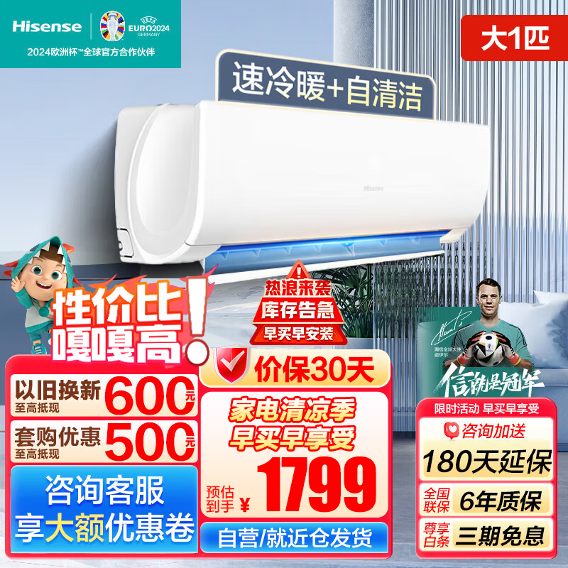 海信(Hisense)大1匹 新三级能效 一键息屏节能自清洁冷暖壁挂式卧室空调挂机 KFR-26GW/E25A3价格:1799.00元!