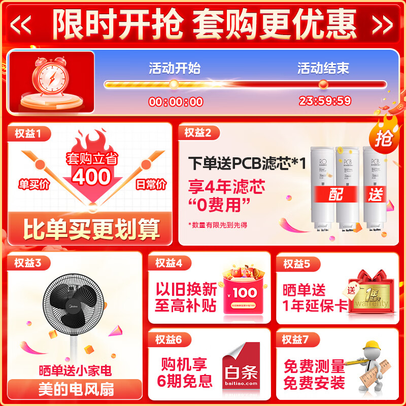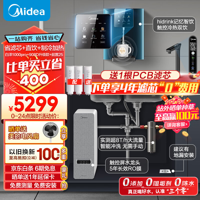 美的(Midea)省芯直饮冷热净水器套装【白泽1000pro+管线机908D+前置-25pro】hidrink 壁挂式加热一体净饮机价格:5299.00元!